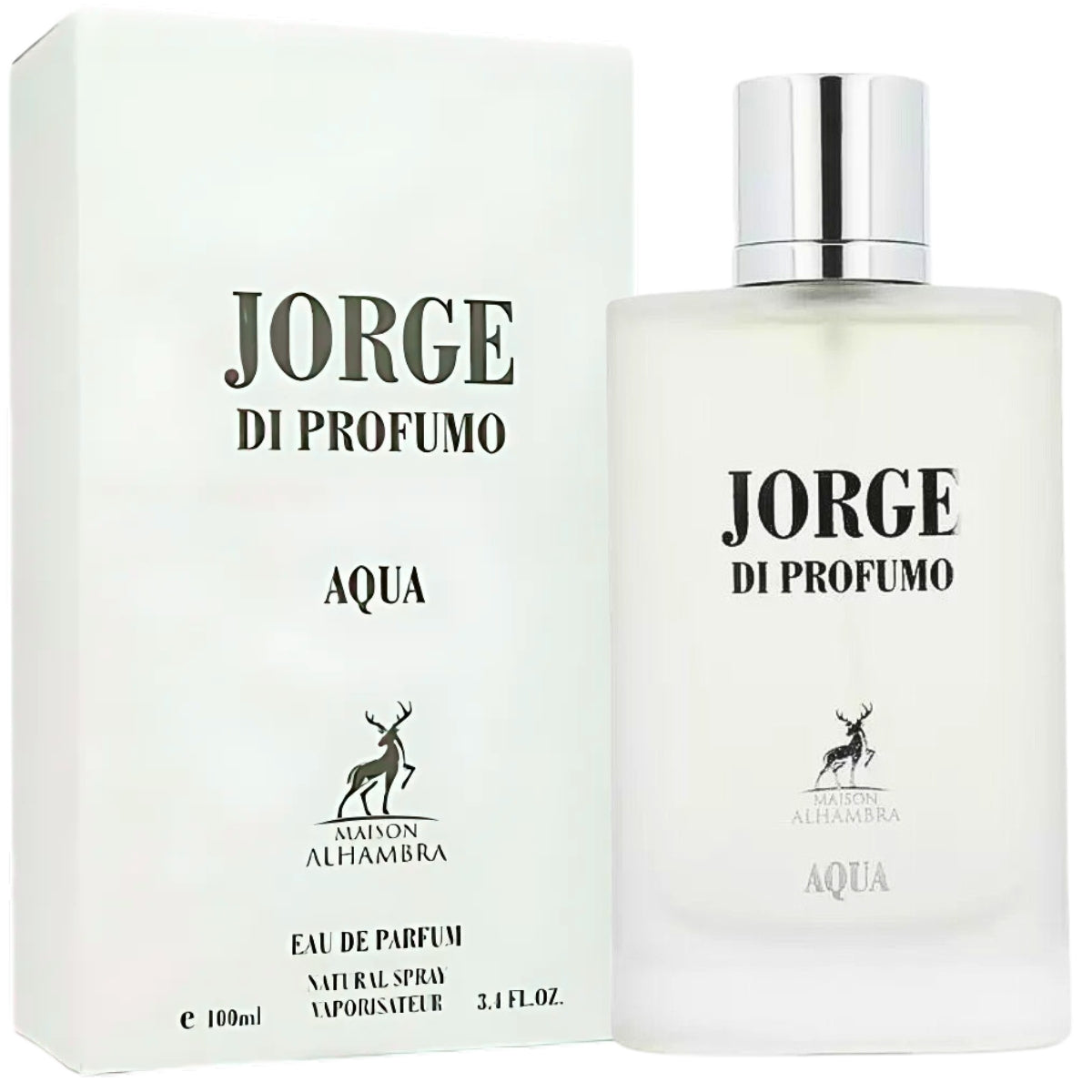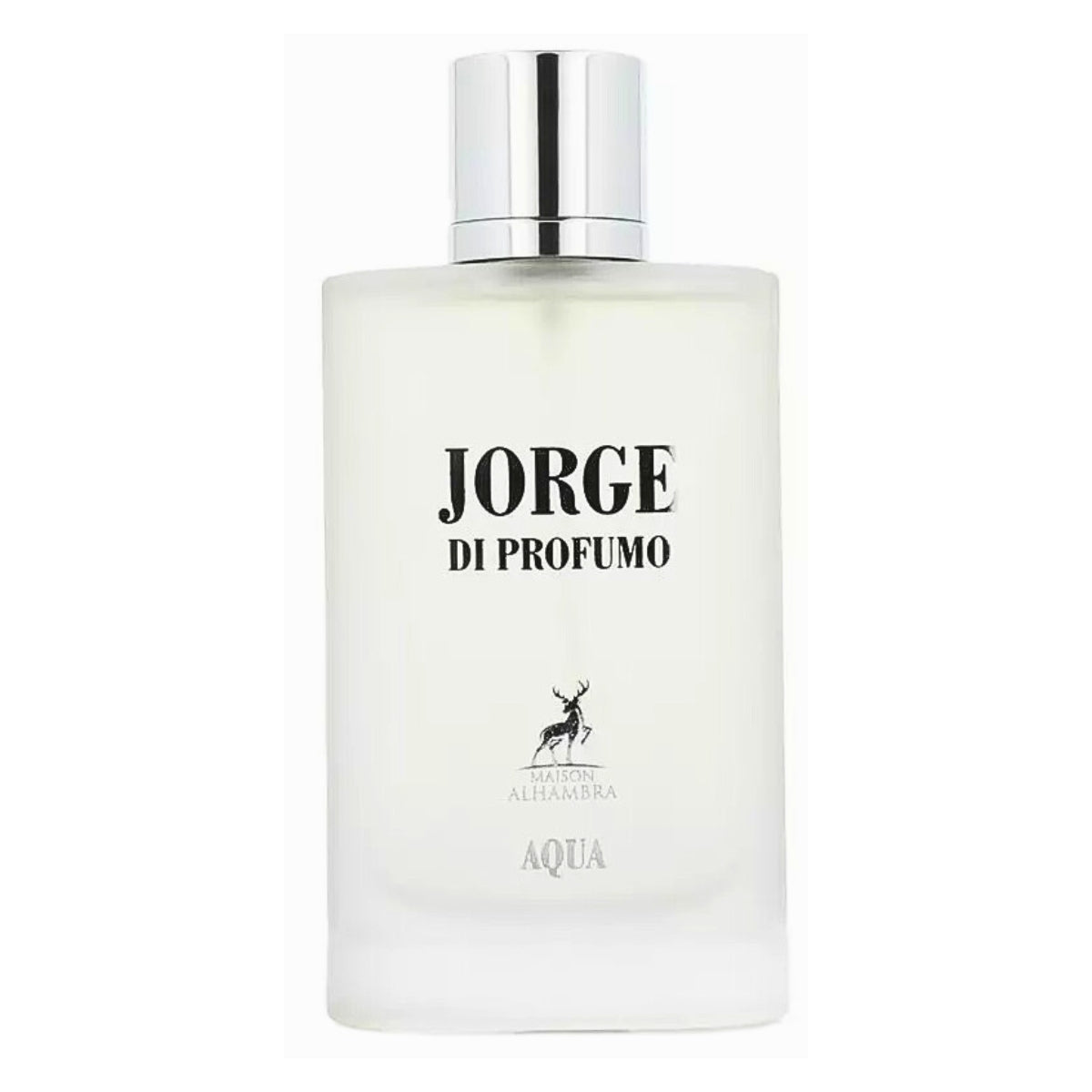 Jorge di Profumo Aqua 100 ml Eau de Parfum de Maison Alhambra es una fragancia masculina de la familia Aromática Acuática, lanzada en 2022. Un perfume fresco, vibrante y elegante, ideal para quienes buscan un aroma versátil en cualquier ocasión. Un Top para el día a día.