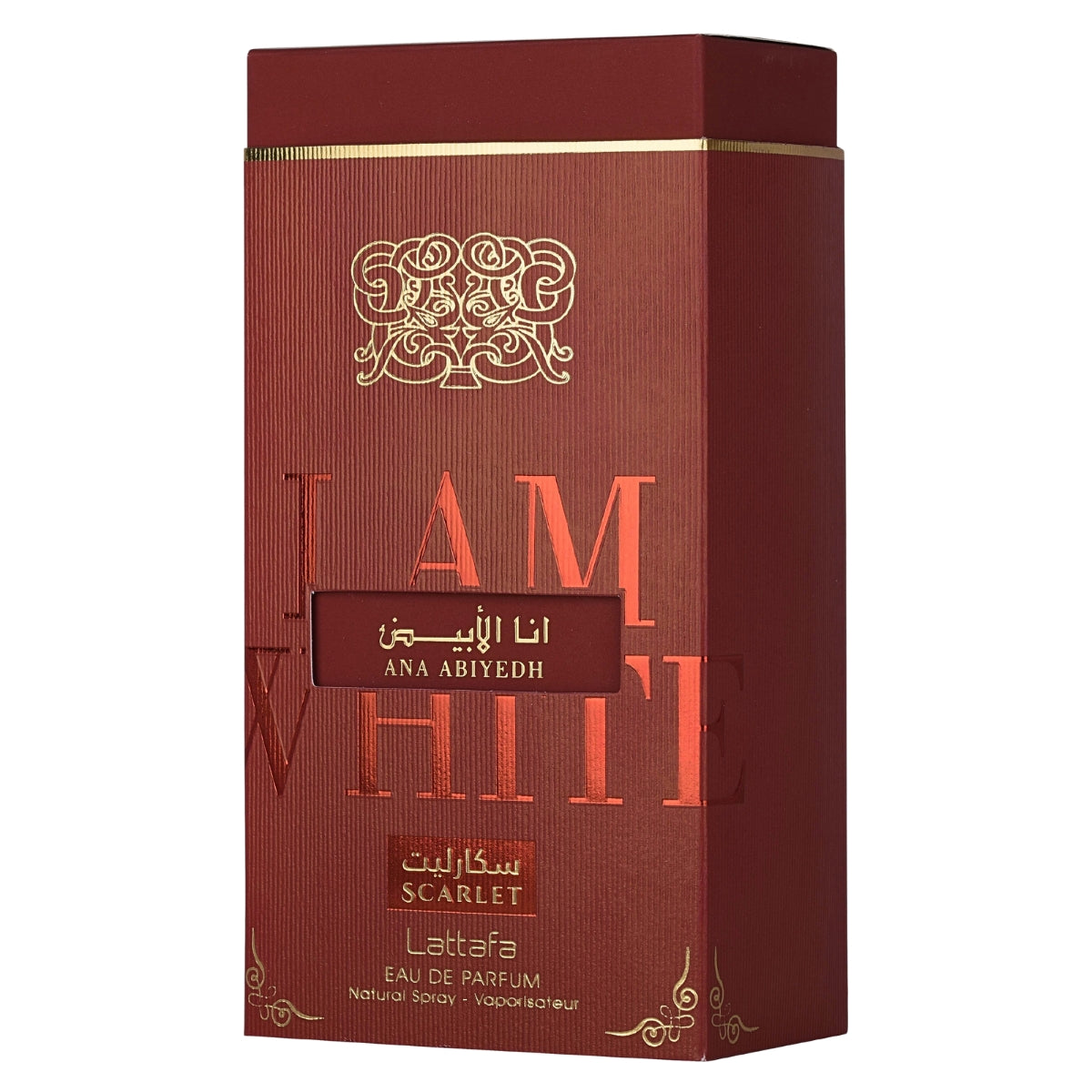 Ana Abiyedh Scarlet de Lattafa Perfumes (2025) es una fragancia femenina floral frutal gourmand que enamora desde el primer instante, combinando la jugosidad intensa de la cereza negra con la delicadeza de las flores blancas y un sutil toque especiado de pimienta rosa y nuez moscada, todo envuelto en un fondo adictivo de caramelo, vainilla y pachulí que aporta calidez, elegancia y un irresistible carácter gourmand.